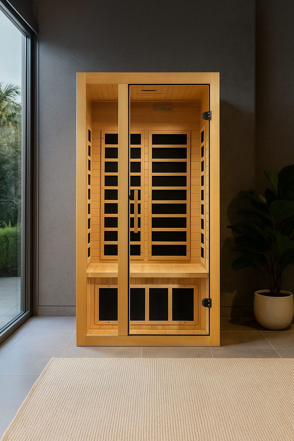The Gracia Sauna features 7 low EMF FAR infrared carbon panels for efficient, even heat that gently penetrates the body. Chromotherapy lighting promotes deep relaxation, while built-in Bluetooth audio lets you enjoy your favorite playlists or calming sounds. Designed for comfort and wellness, it’s a perfect blend of modern technology and therapeutic heat.
