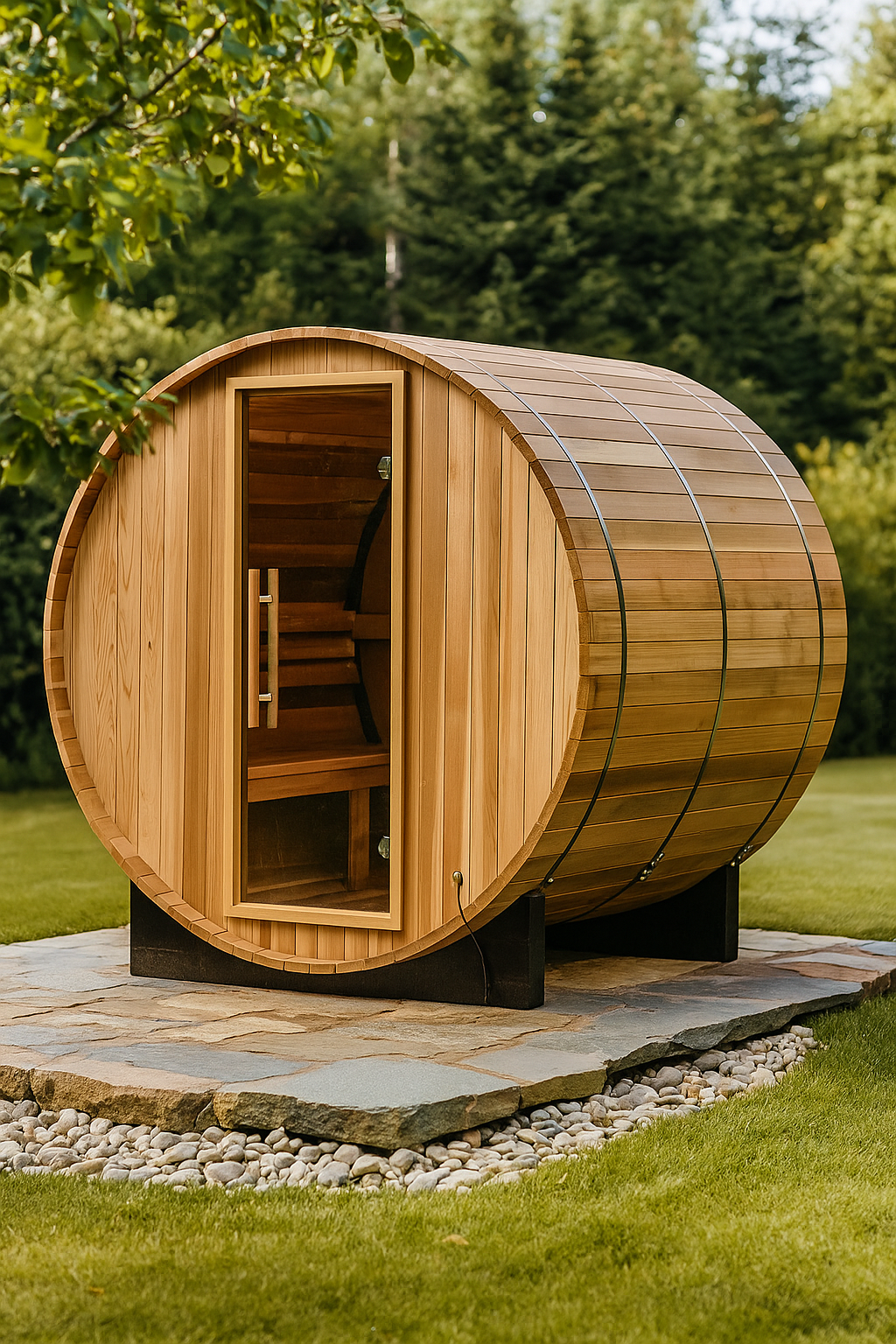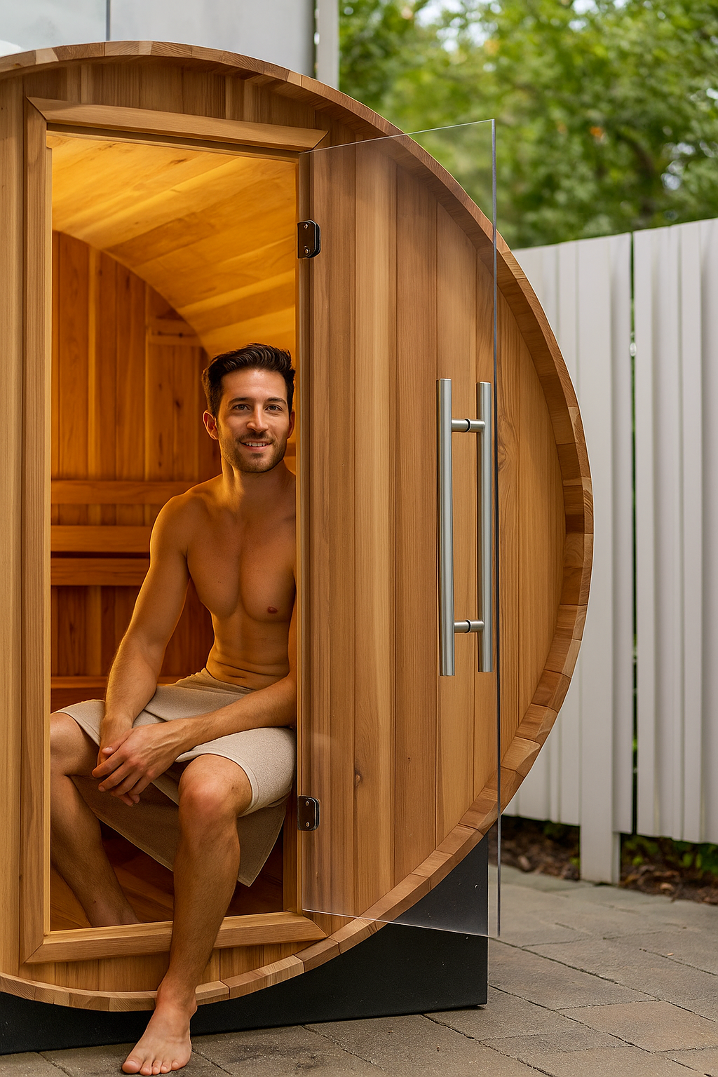 The Zurich sauna’s distinctive barrel shape offers both rustic elegance and superior heat circulation for faster, more efficient warming. Its bronze tempered glass door ensures privacy, while interior accent lighting and backrests create a calming atmosphere. Ideal for solo unwinding or intimate gatherings, it’s the ultimate retreat for relaxation.